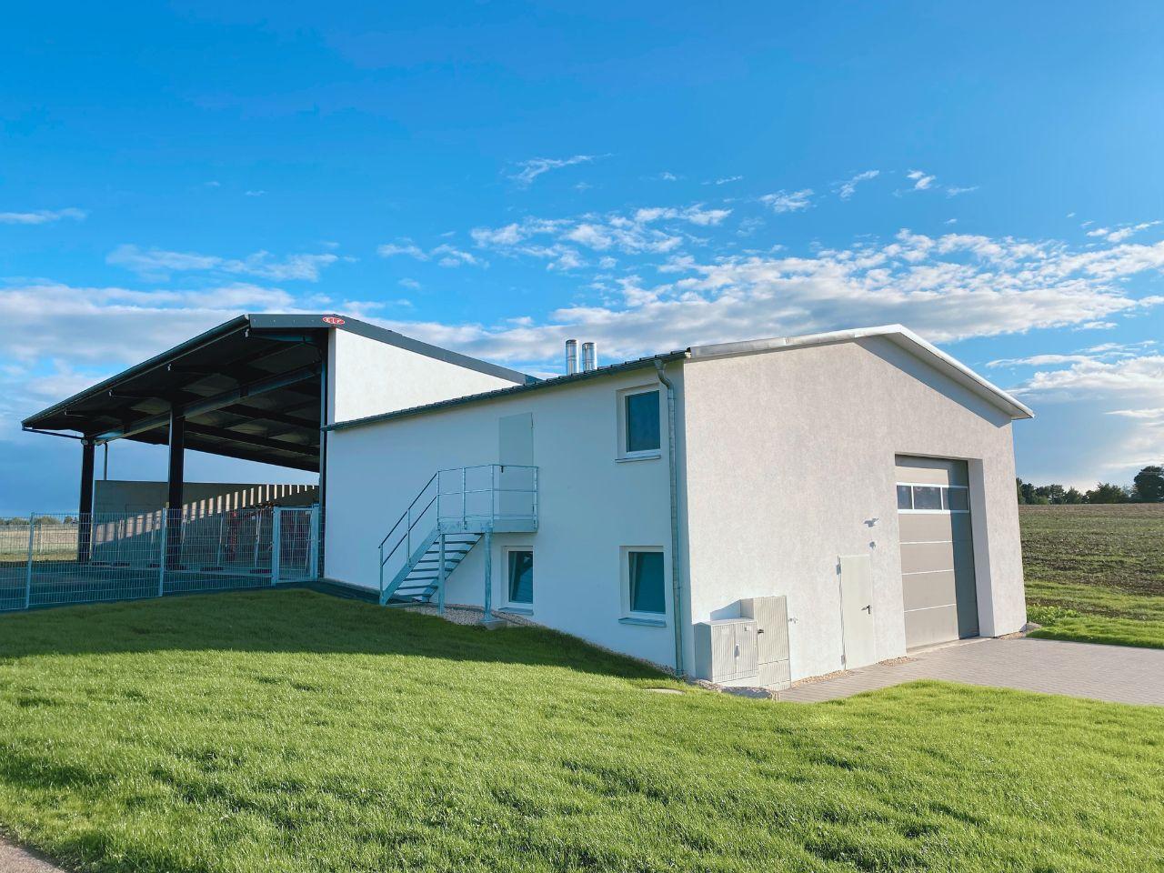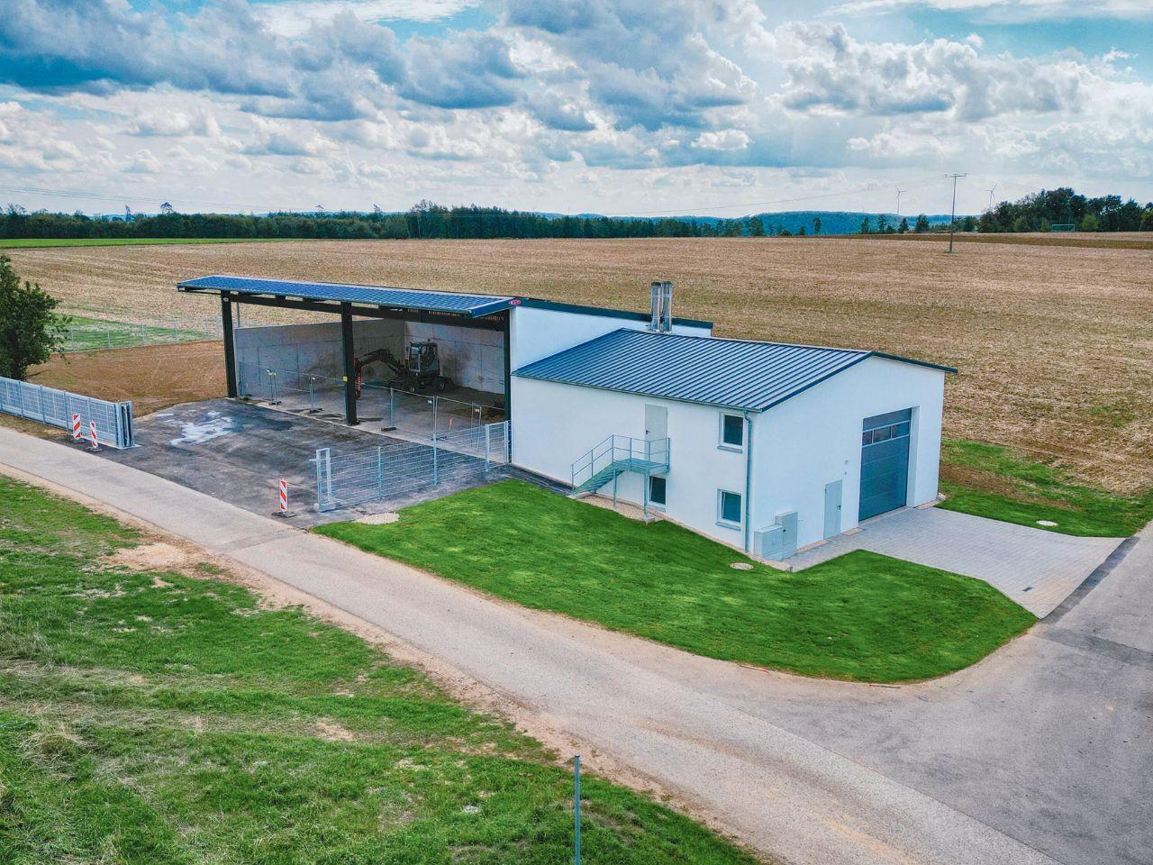 Bei der Planung der Heizzentrale (12x12 m) wurden zwei Hackschnitzelöfen mit Großpufferspeicher (25.000 l) berücksichtigt. Mit 24 x 12 Meter wurde die Lagerhalle großzügig dimensioniert, um einen flexiblen Einkauf der Hackschnitzel zu ermöglichen. Zudem wurde auf der Dachfläche eine PV-Anlage (30 KWh) mit Stromspeicher (18KW) installiert.